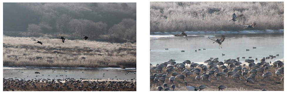 If we only preserve the DMZ proper, the variety of birds that come here will be curtailed. Small forest birds can both find enough food and inside the DMZ, but bigger birds come out here for food and go back in the DMZ just to sleep.